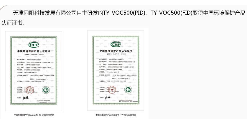 同陽(yáng)TY-VOC500(PID/FID)在線監(jiān)測(cè)系統(tǒng)取得中國(guó)環(huán)境保護(hù)產(chǎn)品認(rèn)證