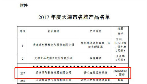 更新時(shí)間: 點(diǎn)擊:16507 所屬欄目:公司新聞 Update Time: Hits:16507 Belong Column:News日前,2017年度天津市名牌產(chǎn)品名單正式公布,同陽科技的揚(yáng)塵在線監(jiān)測系統(tǒng)榮獲“2017年度天津市名牌產(chǎn)品”稱號。