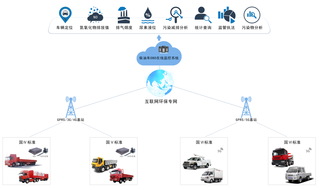 同陽(yáng)科技推出的柴油貨車OBD在線監(jiān)測(cè)解決方案,通過(guò)在柴油貨車上安裝OBD并對(duì)其定位、里程、行程軌跡、氮氧化物排放、顆粒物排放、尿素消耗等數(shù)據(jù)實(shí)施在線監(jiān)控,來(lái)實(shí)現(xiàn)對(duì)柴油貨車的在線監(jiān)管、排放污染物分析、政策指導(dǎo)建議目的。
