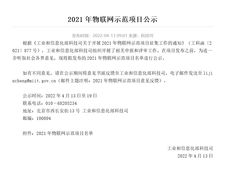 喜報(bào) | 同陽(yáng)科技強(qiáng)勢(shì)入圍工信部2021年度物聯(lián)網(wǎng)示范項(xiàng)目名單